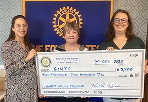 From left, Katelin Stroman, Program Manager, Galveston Rotary Foundation Secretary-Treasurer Kristen Carlson, and Executive Director, Eowyn Johnson