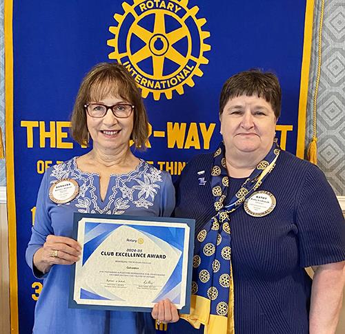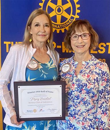 Rotary Club of Galveston past-president Barbara Winburn accepted the Club Excellence Award for the 2024-25 Rotary Year for our club!  Barbara led the club in achieving 21 out of the 22 goals set by Rotary International!  We are Excellence in action!  Shown pictured (l to r) are Barbara Winburn and current club President Kathy VanDewalli.