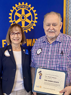 Congratulations to Bud Kulesza!  Bud was introduced this week as our Club’s newest member of The Paul Harris Society. The Paul Harris Society is comprised of individuals who pledge to annually contribute $1,000 or more to the Permanent Fund, Annual Fund, PolioPlus, or an approved Rotary Foundation grant. Past President, and Chair of District 5910 Paul Harris Society Barbara Winburn introduced Bud Kulesza as the newest member of The Paul Harris Society.
