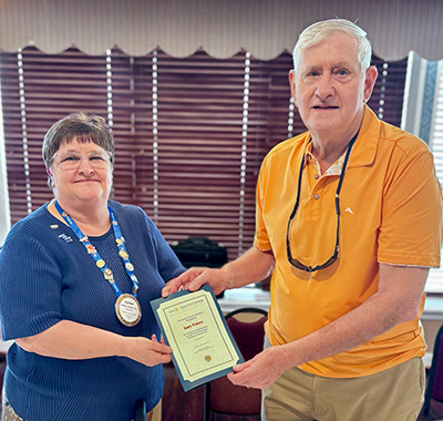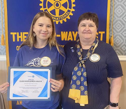 Hailey Brechtel, past-president of the Galveston Interact Club, accepts the 2024-25 Club Excellence Award from Rotary Club of Galveston president Kathy VanDewalli. The Club Excellence Award recognizes clubs that support Rotary's Action Plan by completing activities that help increase our impact, expand our reach, enhance participant engagement, and increase our ability to adapt.