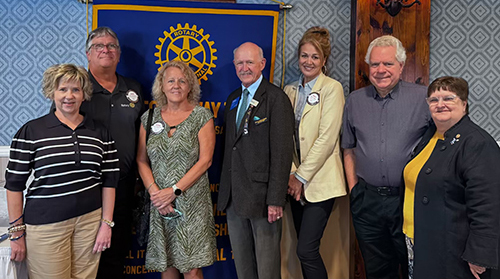 Welcome to our newest club members!  Pictured (l to r) are new members Margie Kusnerik, John VanDewalli, and Rhona Slingerland with 5910 District Governor Charley Gilliland, and new members Mary White, and Mike Dudas and club President Kathy VanDewalli. These 5 new members were introduced at our September 10, 2025 meeting.  Welcome!