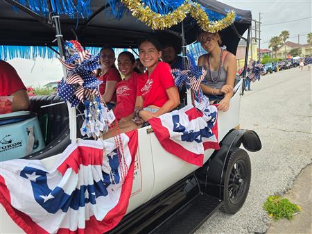 In partnership with United Way Galveston, the Rotary Club of Galveston installed a Born Learning Trail at Austin Elementary School on February 9, 2025.  The Trail consists of 10 interactive signs printed in both English and Spanish along with colorful artwork painted on the sidewalks and adjoining walls.